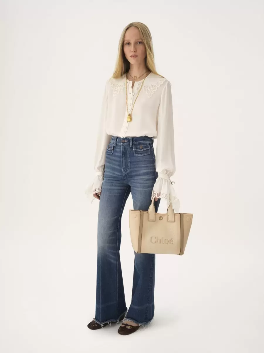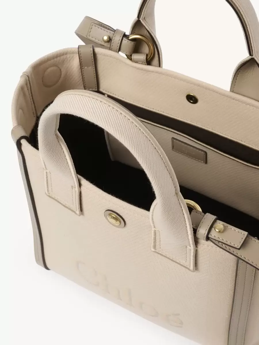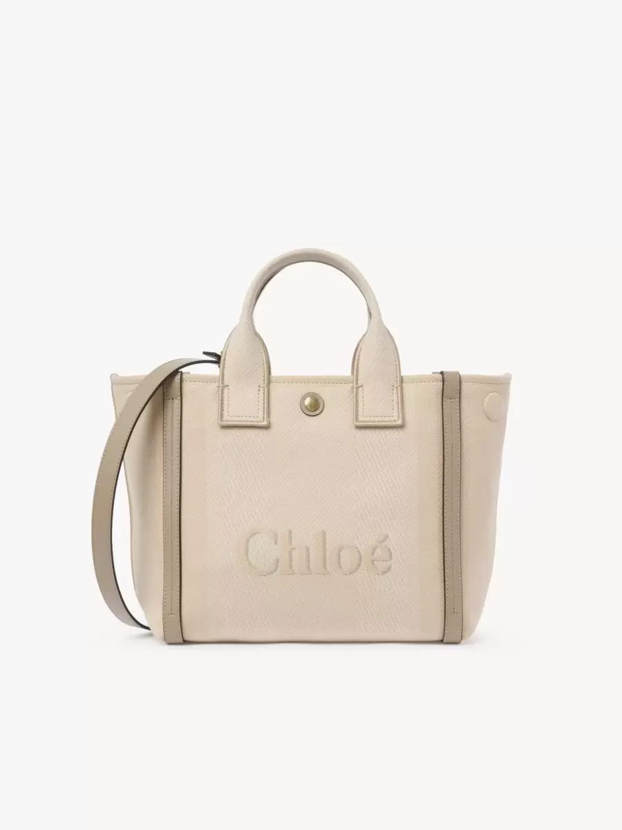 El pequeño bolso tote Chloé Carry está confeccionado en lona de algodón jacquard a rayas, con bandas verticales de cuero en contraste y un logotipo extragrande de Chloé. Este bolso de día cuenta con imanes laterales que permiten ajustar su silueta estructurada a una forma redondeada y compacta. Llévalo con las asas dobles o la correa ajustable y extraíble. Bolso tote Chloé Carry pequeño en lona de algodón. Material principal: 91 % algodón, 6 % poliéster, 3 % otras fibras <5 %. Material secundario: piel de becerro. Forro principal: 91 % algodón, 6 % poliéster, 3 % otras fibras <5 %. Cómo llevar: en la mano, al hombro o cruzado. Un compartimento principal. Un bolsillo interior plano. Bolsillos ajustables y… Correa extraíble