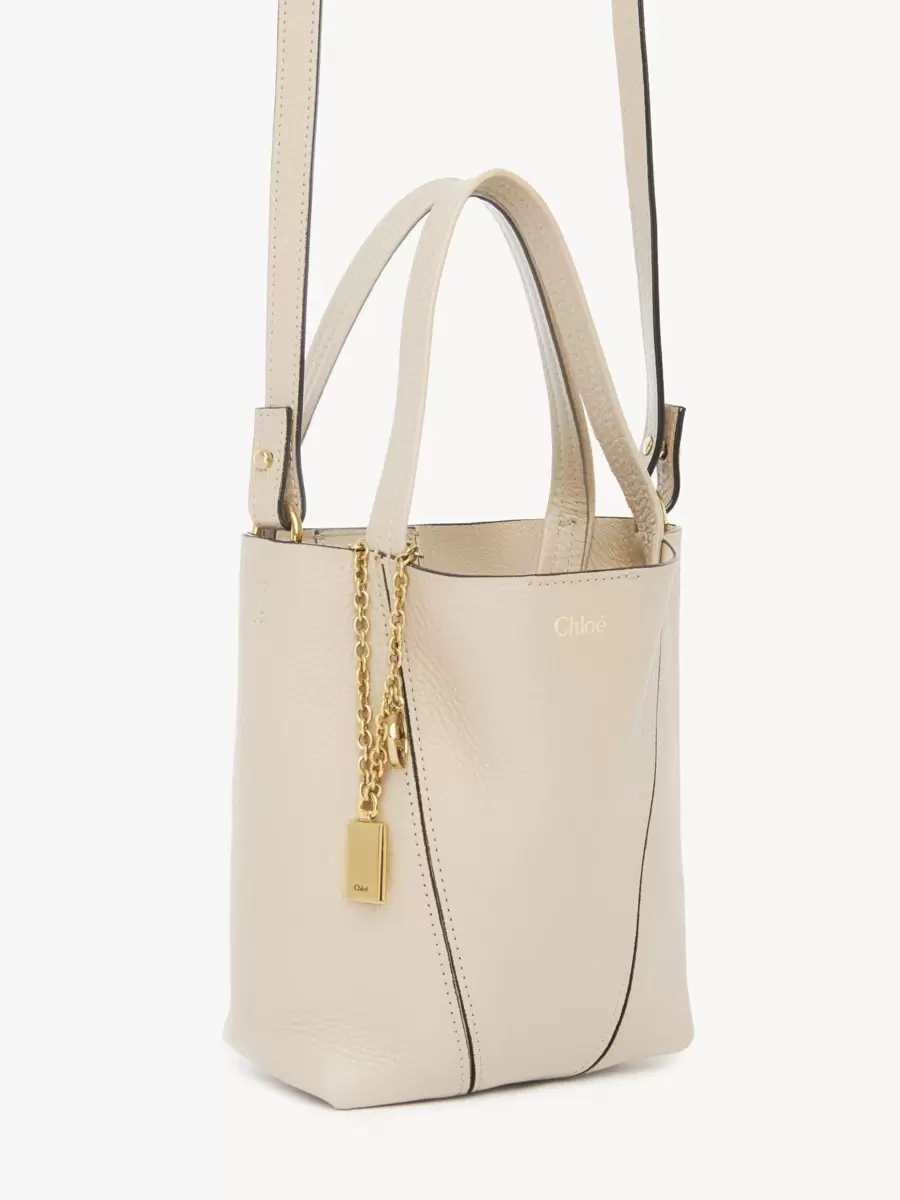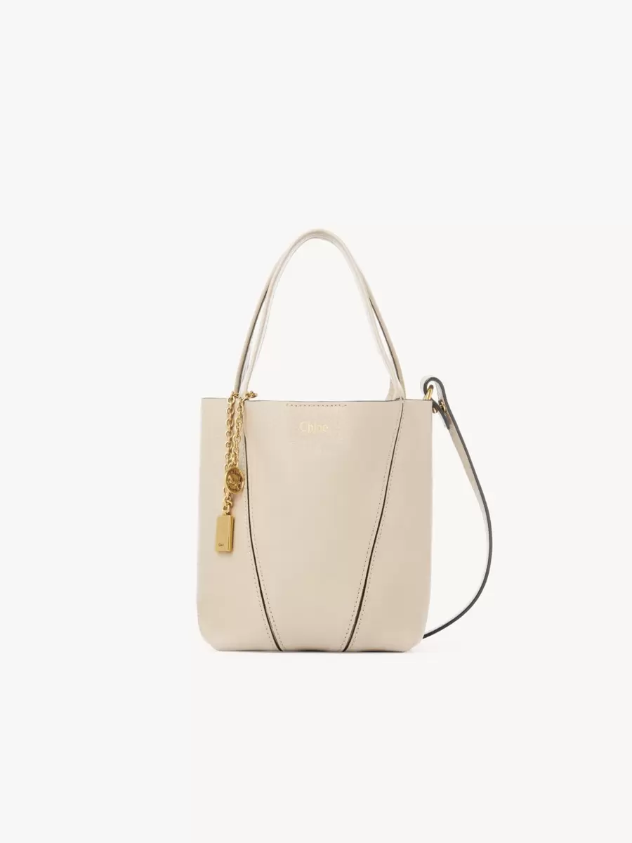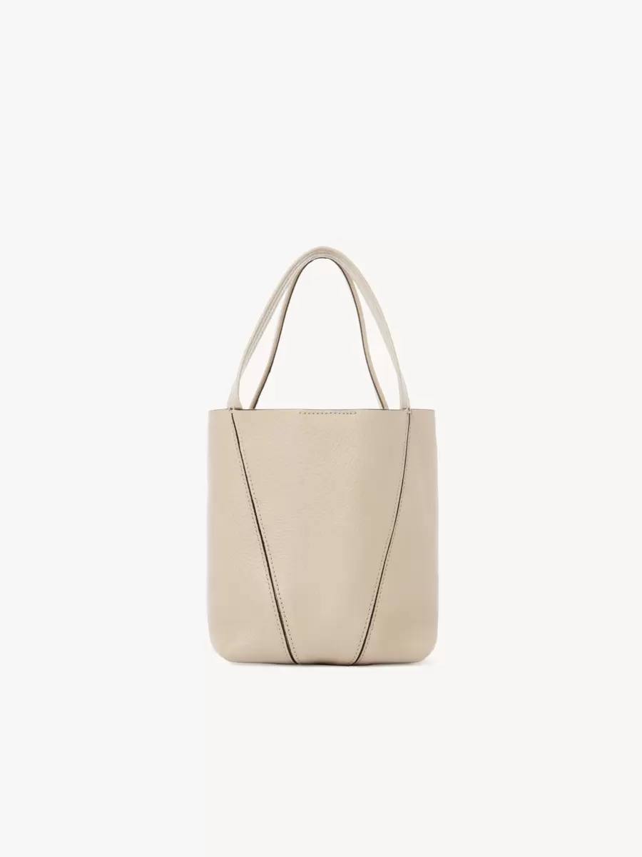 Elaborado en piel de vacuno granulada brillante, el pequeño bolso tote Chloé Spin presenta una silueta minimalista realzada con líneas gráficas. Una cadena colgante luce las medallas Chloé y Horse de la Maison.