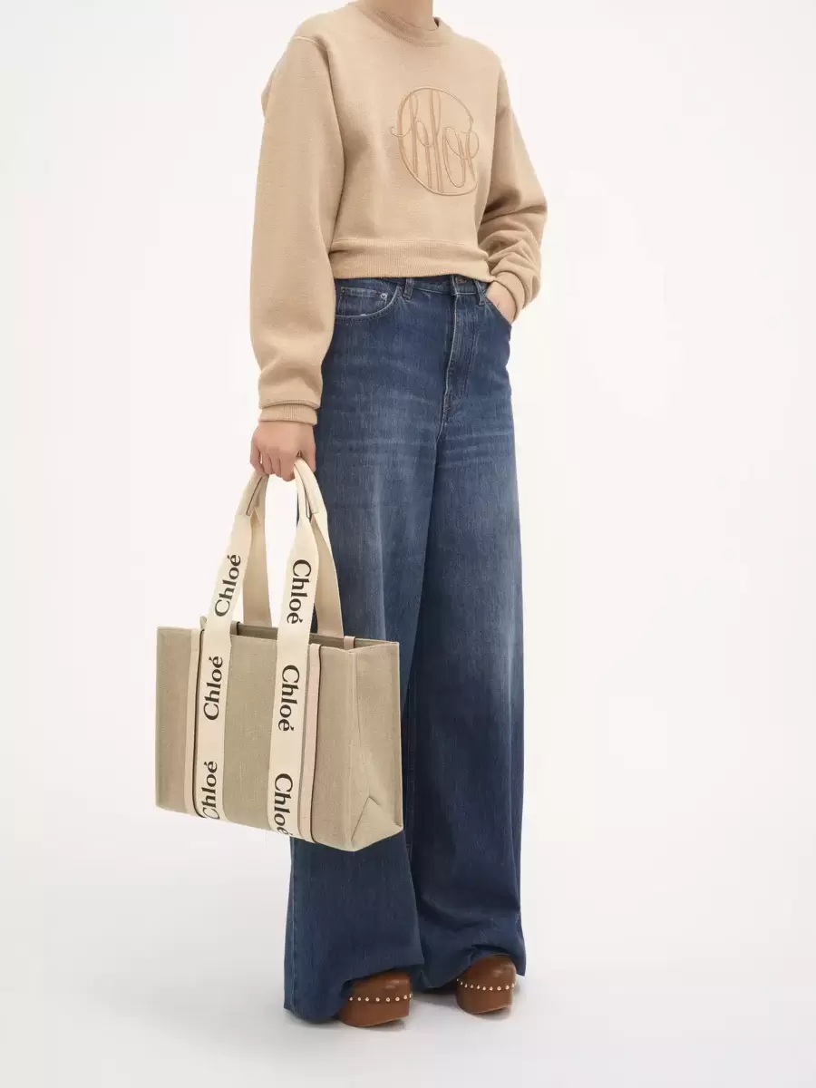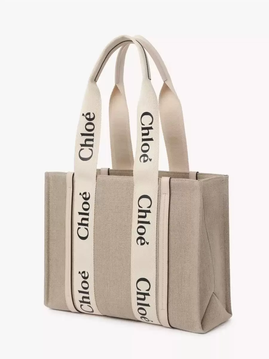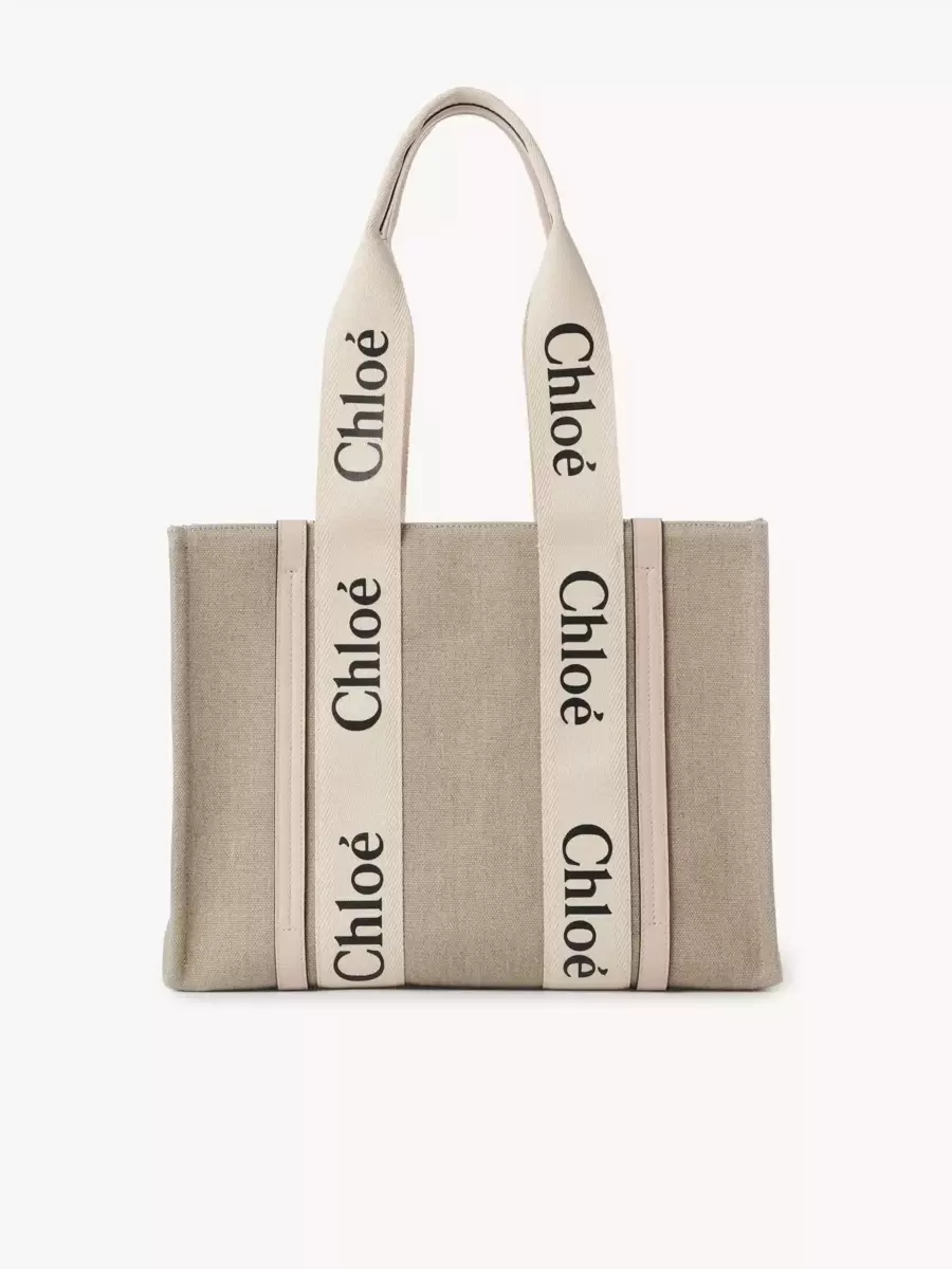 Bolso tote en lona de lino y piel de becerro brillante con el logo de Chloé.