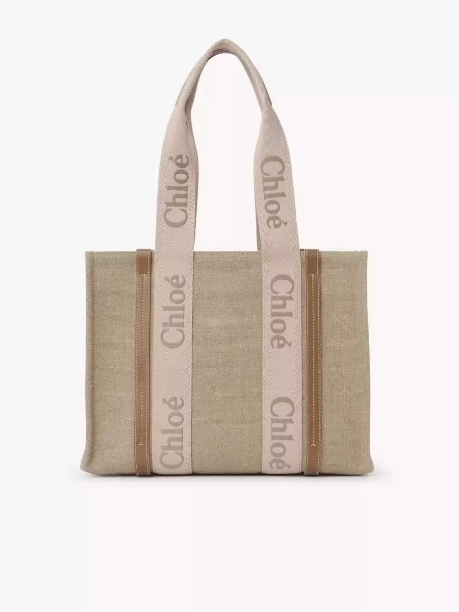 Bolso tote en lona de lino, piel de becerro y cincha con bordado del logotipo de Chloé.