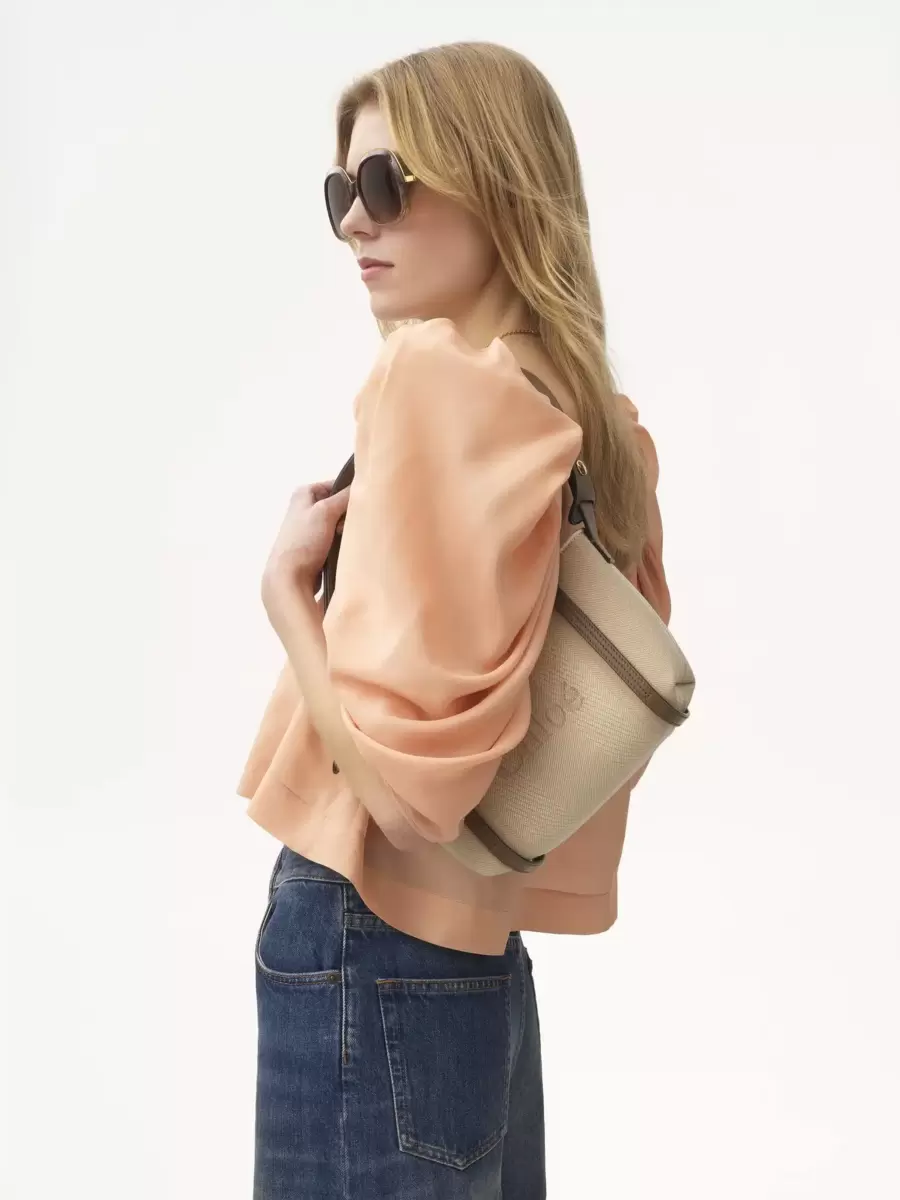 Este bolso de hombro está confeccionado con un tejido adaptado a las necesidades de la marroquinería. Se le ha aplicado un tratamiento hidrófugo, pero se recomienda evitar la exposición a la lluvia.
