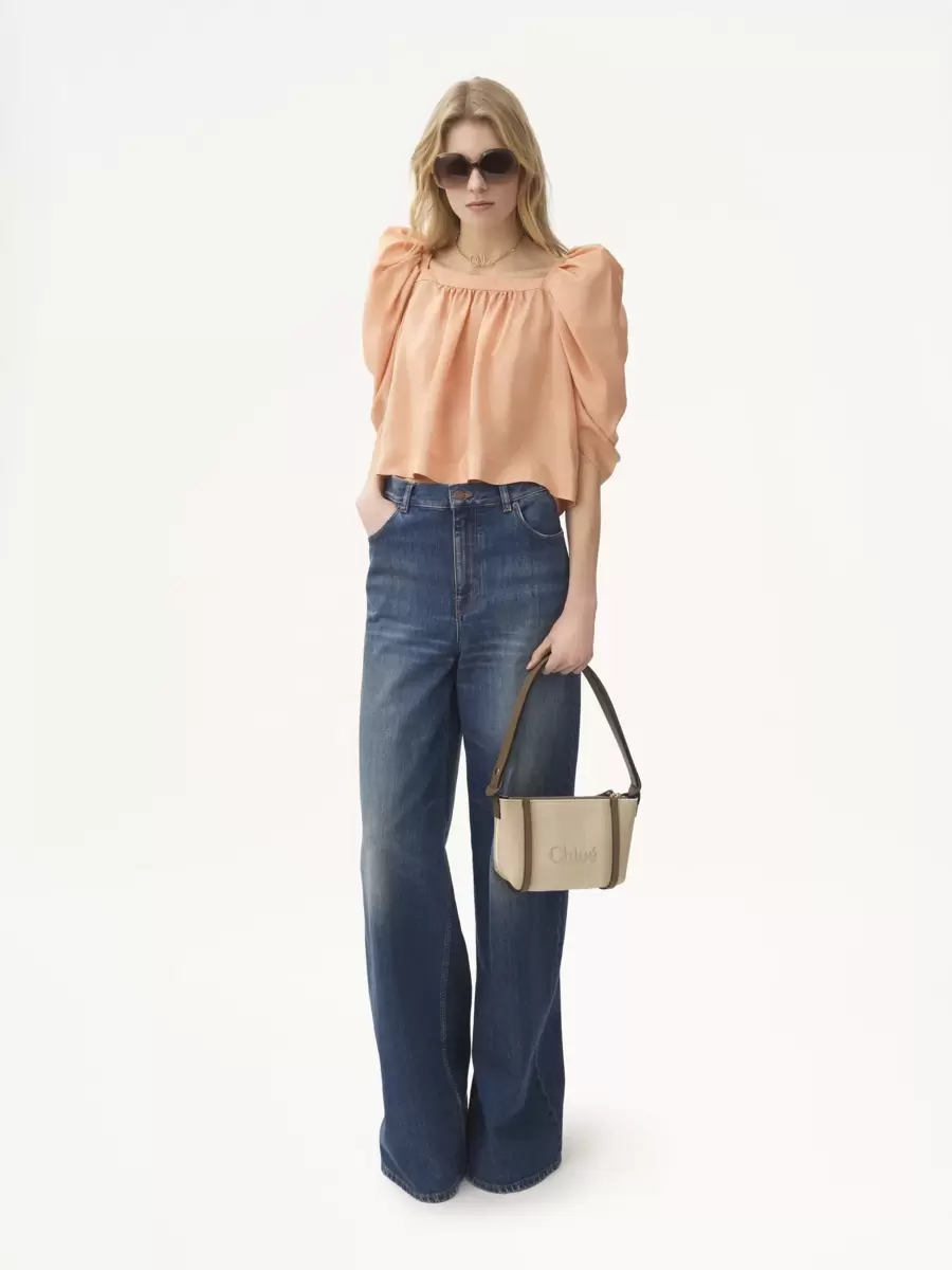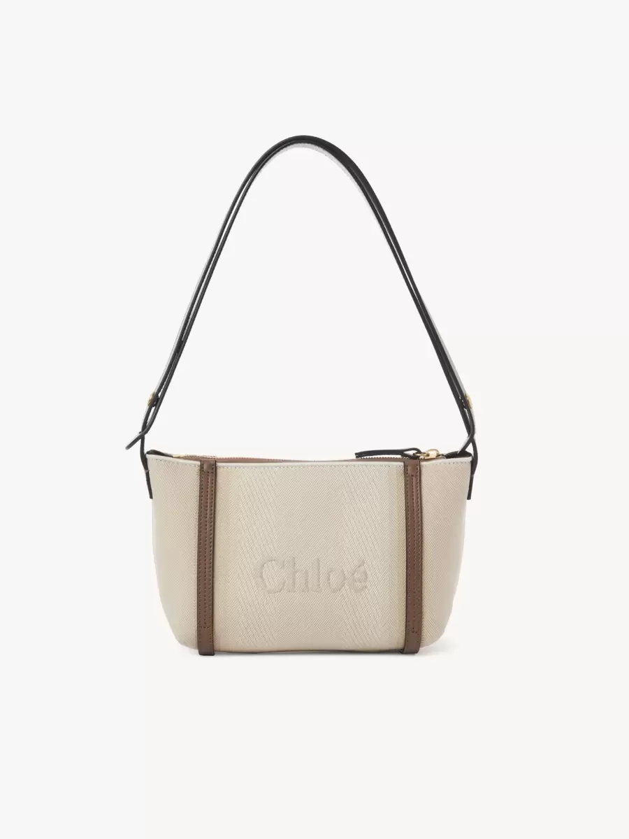 Este bolso de hombro con cremallera Chloé Carry está confeccionado en jacquard de lona de algodón reciclado, adornado con bandas de cuero verticales en contraste y un logotipo Chloé de gran tamaño.