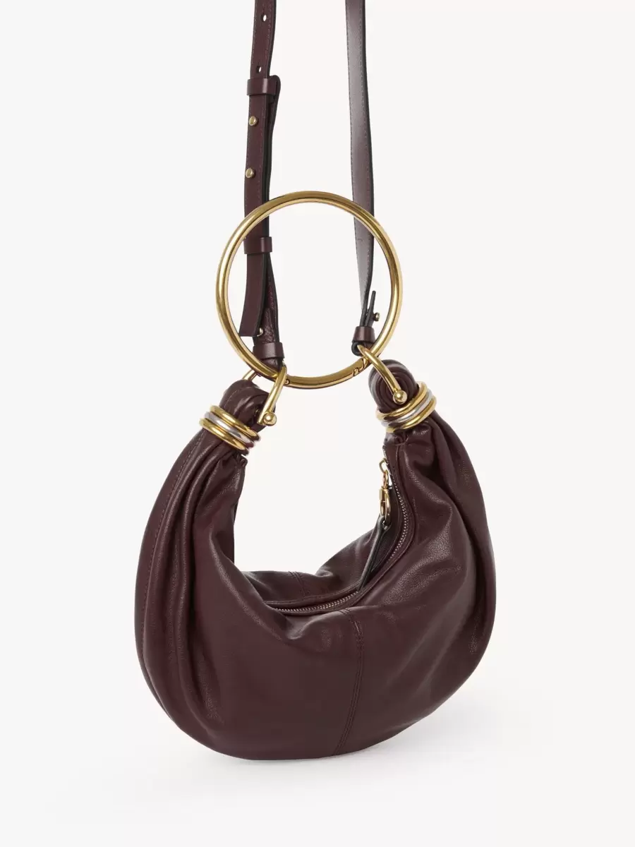 Inspirado en los Archivos de la Maison, este pequeño bolso Brazalete Hobo está elaborado en piel de búfalo granulada. Su forma flexible y redondeada se realza con un asa tipo pulsera y anillas bicolor superpuestas en los extremos.