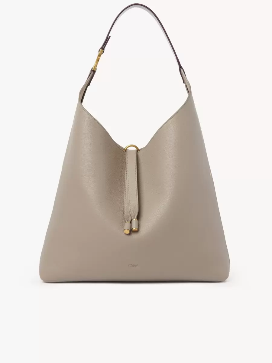 La icónica línea Marcie de la Maison se amplía con este espacioso bolso hobo, que combina líneas limpias con una silueta suave y relajada. Elaborado en piel de becerro granulada, este bolso de día luce la pieza metálica distintiva de la línea en el asa de cuero. Sutiles tachuelas doradas y borlas colgantes realzan la estética distintiva de Marcie, mientras que el espacioso interior se completa con un bolsillo con cremallera. Luce este bolso hobo de forma informal al hombro. Todo sobre Marcie… La línea de bolsos Marcie de la Maison combina una estética femenina con el espíritu folk de los años 70. Los icónicos herrajes y las borlas colgantes realzan el espíritu ecuestre con detalles exclusivos.