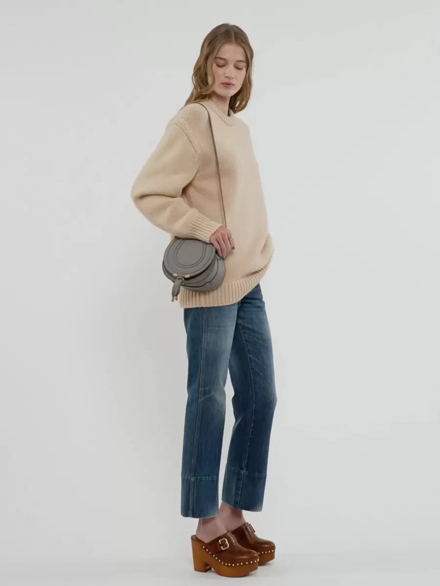 Este pequeño bolso de mano Marcie está elaborado en piel de becerro granulada. La armoniosa combinación de una línea superior impecable y una silueta redondeada es característica del juego de la Maison entre lo masculino y lo femenino. La correa de piel ajustable de Marcie es perfecta para llevar al hombro o cruzado.