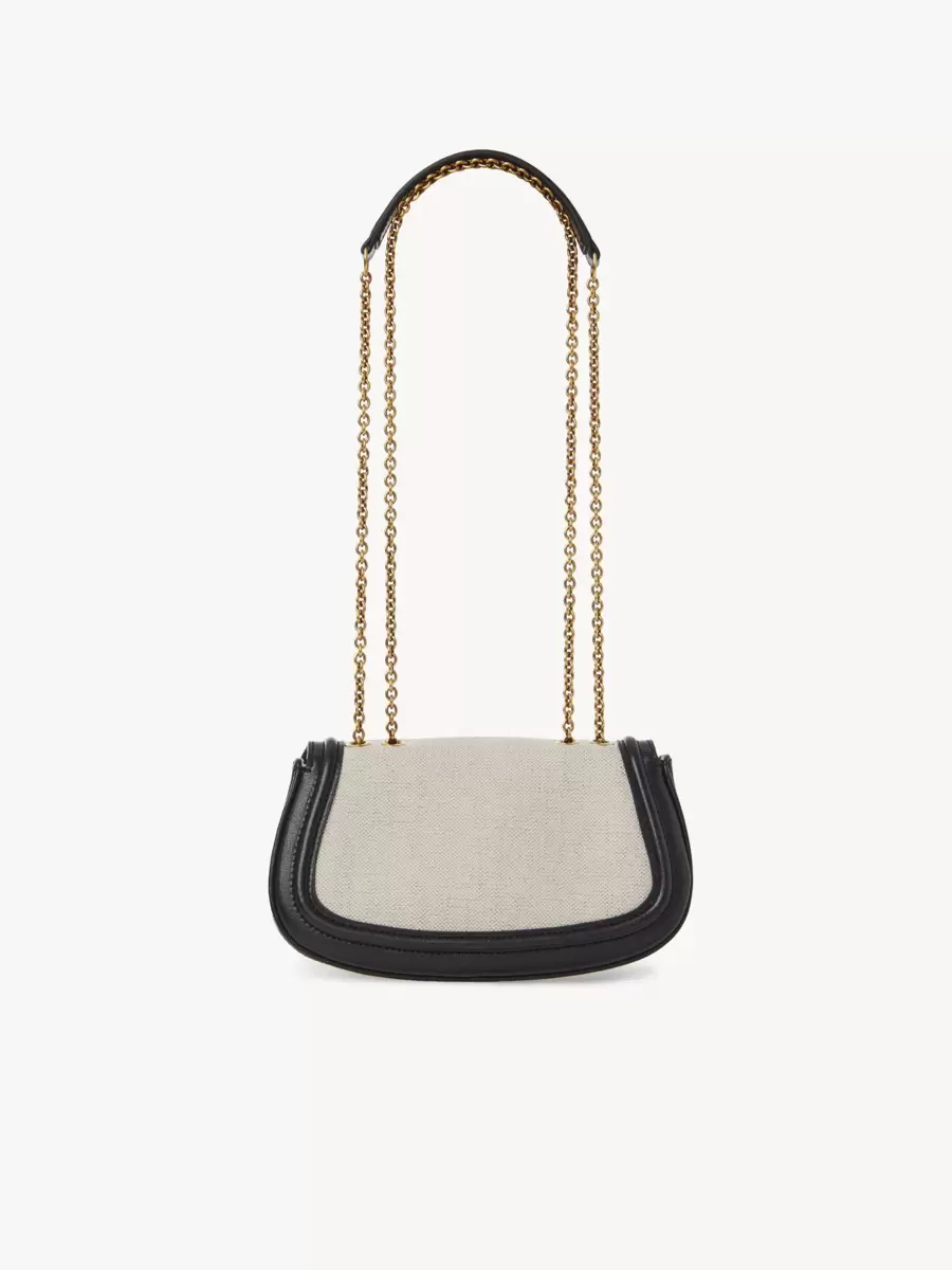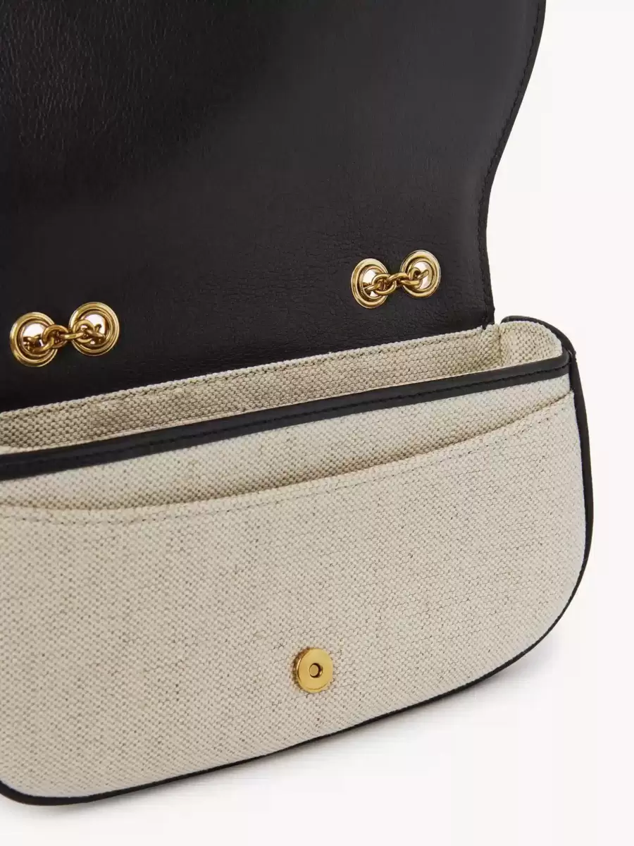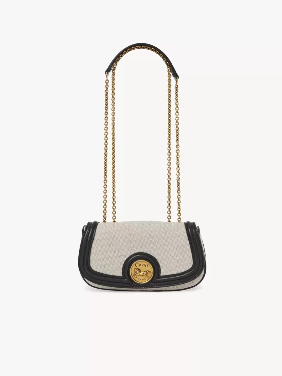 Este bolso bandolera Horse Medal está confeccionado en una mezcla de lona de algodón y piel de búfalo granulada. Su silueta redondeada combina líneas gráficas con la icónica medalla dorada de la Maison, que presenta la imagen en relieve de un caballo al galope y el logotipo de Chloé Paris grabado. Este minibolso incluye una correa de cadena para llevarlo cruzado. Piel de búfalo granulada