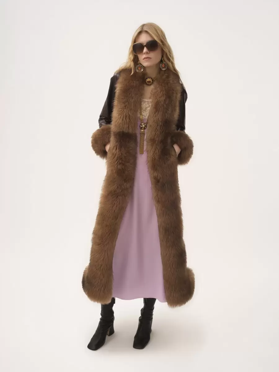 Abrigo de columna larga en piel