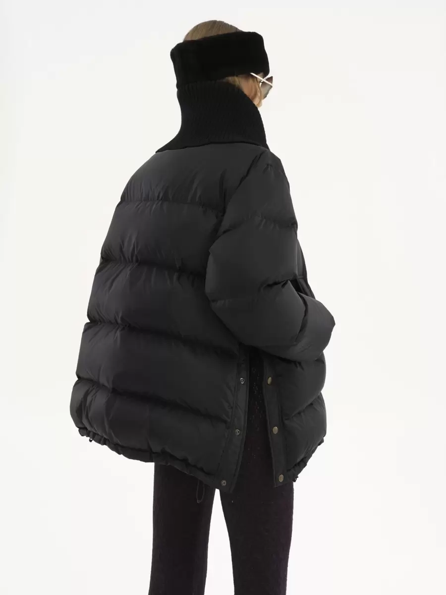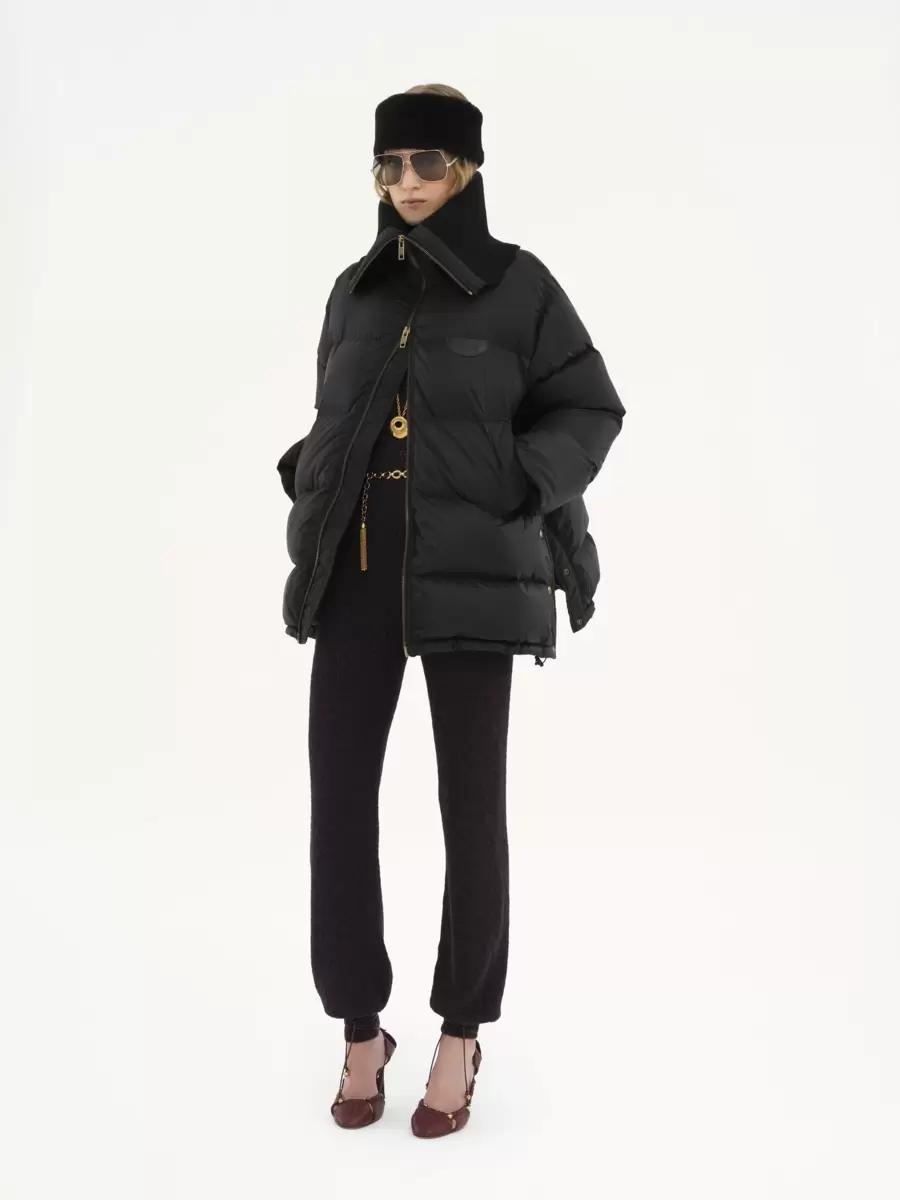 Chaqueta acolchada extragrande de cuello alto en nailon reciclado brillante con ribete festoneado en cuello y puños, botones a presión en los laterales y parche con el logotipo de Chloé en el pecho. Exterior: 100 % poliamida. Ribete: 37 % lana, 27 % viscosa, 25 % poliamida, 9 % lana de cachemira, 2 % elastano. Relleno: 81 % plumón de ganso, 9 % plumas de ganso, 9 % plumón de pato, 1 % plumas de pato. Forro: 100 % poliamida. Ajuste: extragrande. Modelo: 178 cm y talla 36. Cremallera frontal. Bolsillos laterales. Botones a presión en los laterales. Cuidado: solo limpieza en seco. Esta prenda está hecha de material reciclado. Poliamida, que ayuda a reducir su impacto ambiental y apoya la economía circular.