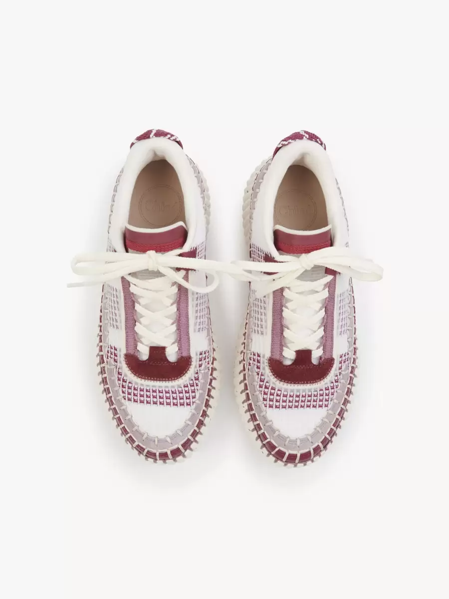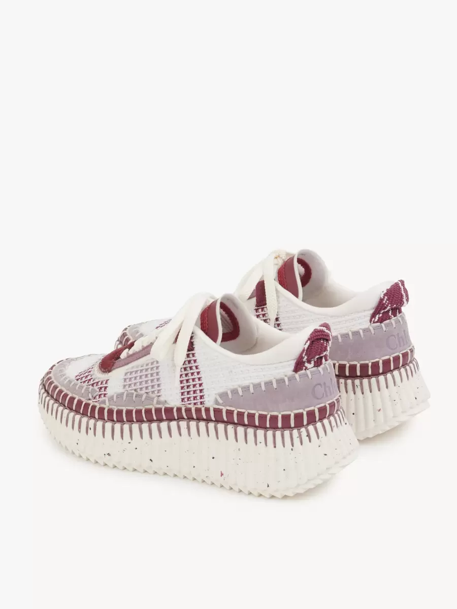 Las zapatillas Nama están confeccionadas con materiales reciclados en una mezcla de colores y texturas contrastantes. Estas zapatillas tienen una suela icónica, ligera y ultracómoda con efecto moteado, y están rematadas con una impecable costura de manta, que se realiza a mano en 4,5 horas. El logotipo de Chloé adorna la parte trasera.