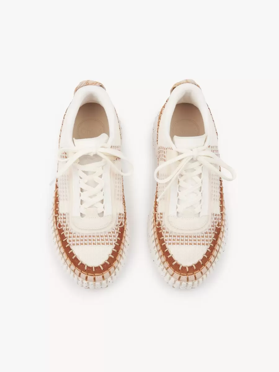 Las zapatillas Nama están confeccionadas con materiales reciclados en una mezcla de colores y texturas contrastantes. Estas zapatillas tienen una suela icónica, ligera y ultracómoda con efecto moteado, y están rematadas con una impecable costura de manta, que se realiza a mano en 4,5 horas. El logotipo de Chloé adorna la parte trasera.